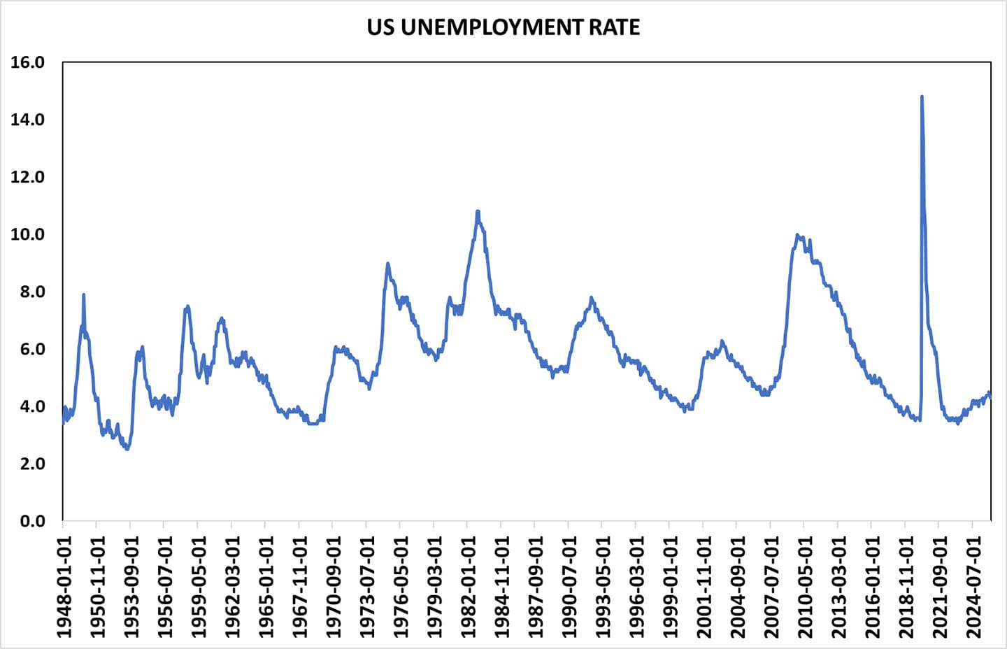Major economic shocks have historically caused sharp increases in U.S. unemployment. The rate rose to 10.8% in 1982 during the stagflation period, 10% during the 2008 Global Financial Crisis, and nearly 15% during the COVID-19 pandemic in 2020. These episodes show how major shocks can quickly weaken labor markets and contribute to broader economic downturns.