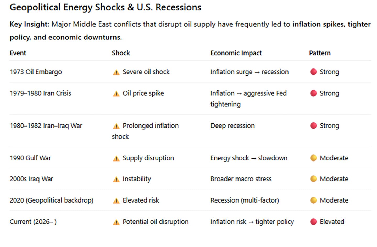 Geopolitical tensions in the Middle East remain a key macro risk. Historically, energy supply disruptions have contributed to: