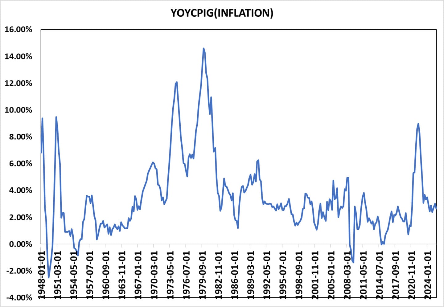 Inflation peaked above 14% in 1980 during the stagflation period, driven largely by energy shocks and geopolitical instability. In contrast, inflation remained subdued during the 2008 Global Financial Crisis but rose sharply after the COVID-19 pandemic due to fiscal stimulus, supply disruptions, and strong demand. These episodes show how inflation is influenced by energy shocks, policy responses, and broader macroeconomic conditions.