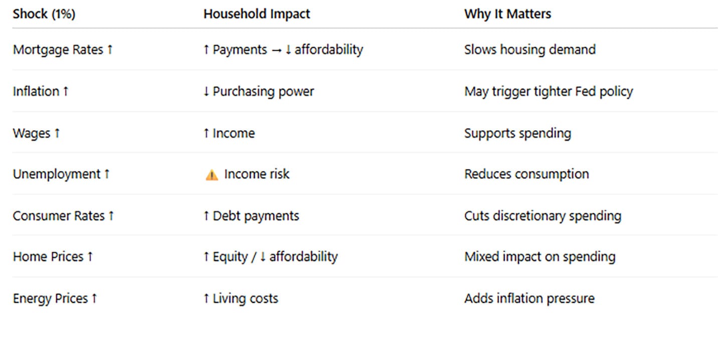 Small changes in rates, inflation, and employment can have meaningful impacts on household finances and spending behavior.
